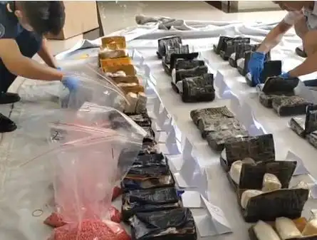 經(jīng)清點(diǎn),該批塊狀可疑物共44塊,內(nèi)部為紅**劑,經(jīng)鑒定確認(rèn)該批物品為**片劑,凈重25.25公斤。